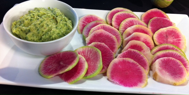 Slice watermelon radishes and serve with the chilled bean dip, as a cracker or bread replacement.