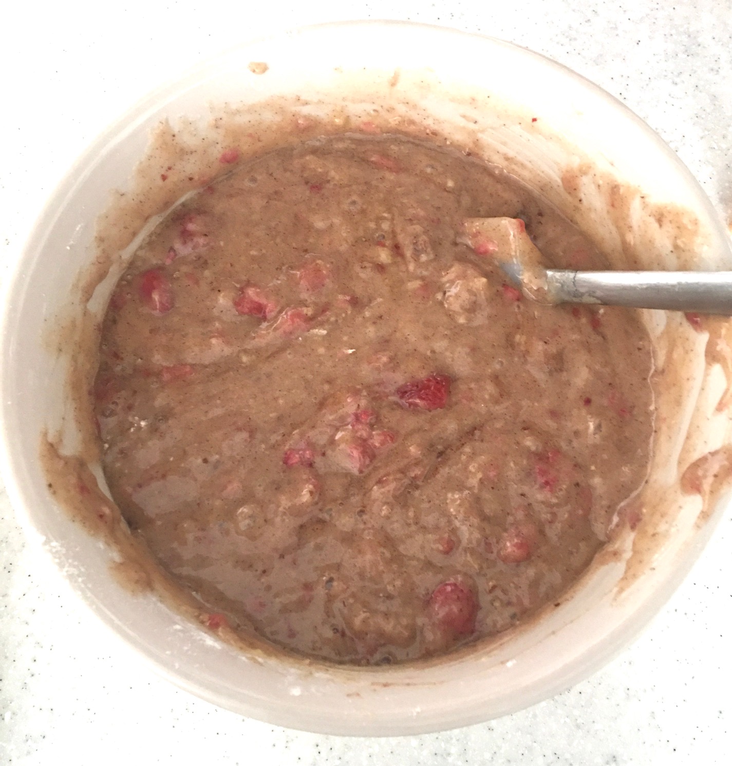- Add strawberry mixture to dry ingredients and stir until just blended.